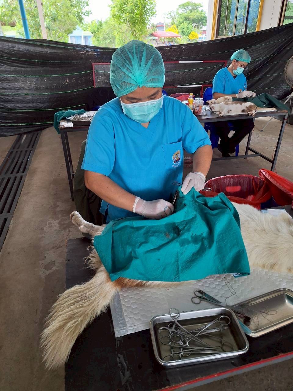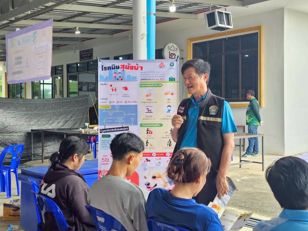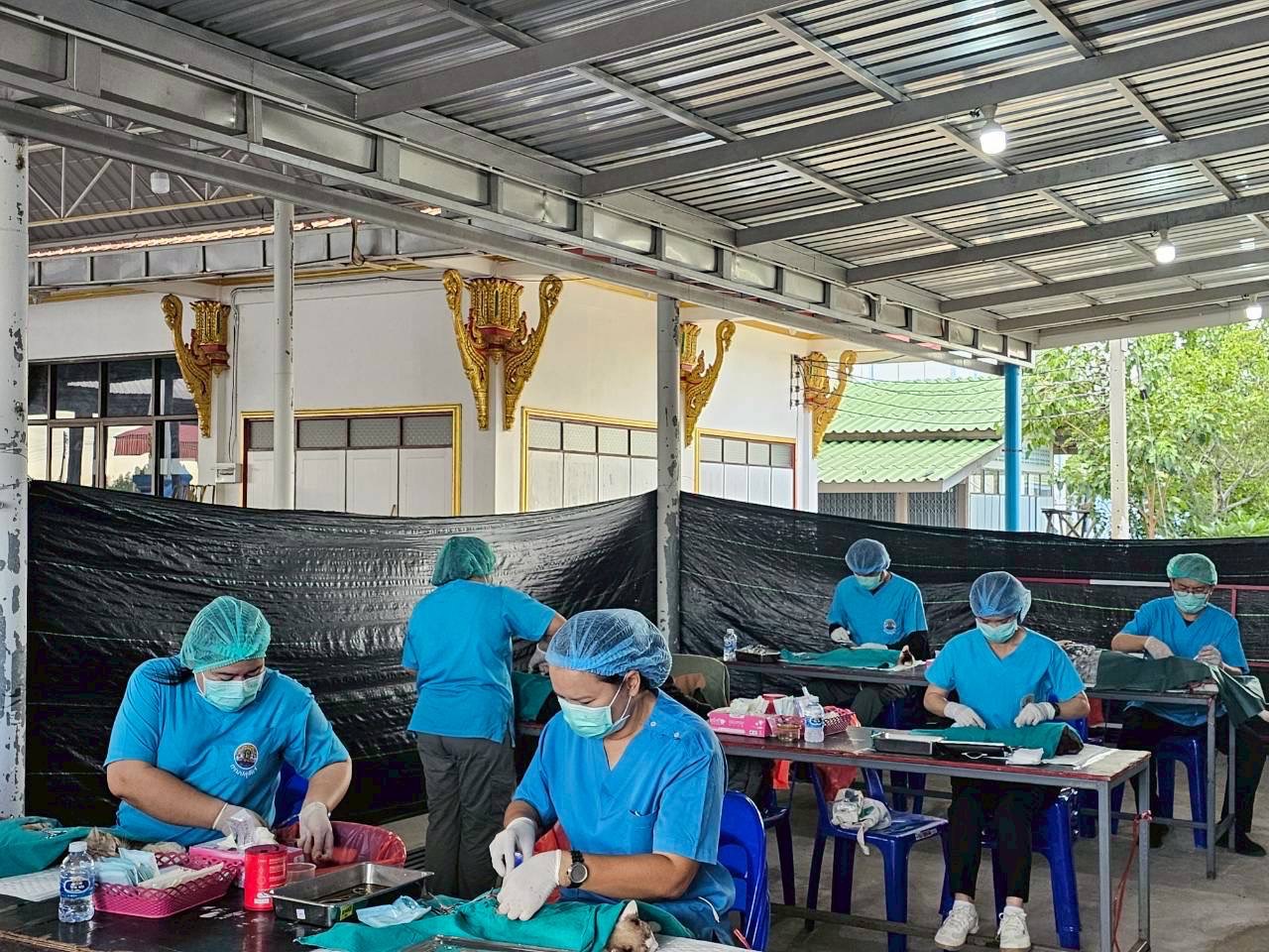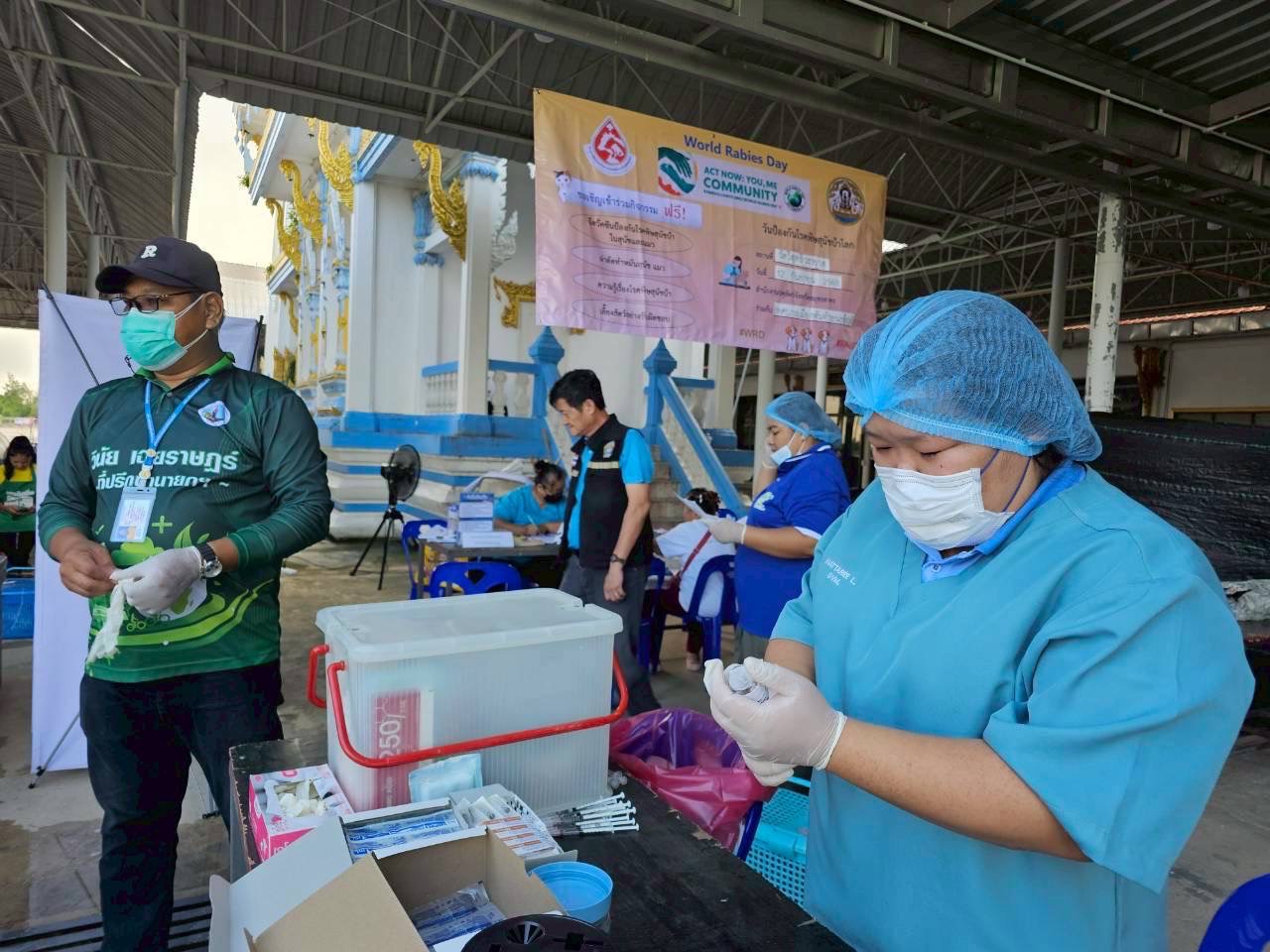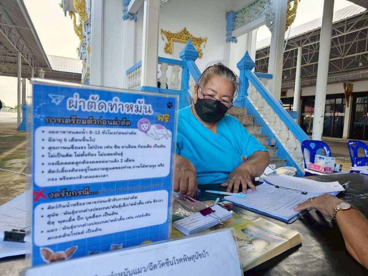 วันที่ 12 กันยายน 2568 เวลา 08.30 น. นายฉัตรชัย ประทุมมาลย์ ปศุสัตว์จังหวัดสมุทรสาคร มอบหมายให้นายนันทศักดิ์ มุสิกศิลป์ นายสัตวแพทย์ชำนาญการพิเศษ หัวหน้ากลุ่มพัฒนาสุขภาพสัตว์ พร้อมด้วยเจ้าหน้าที่กลุ่มพัฒนาสุขภาพสัตว์ กลุ่มส่งเสริมและพัฒนาการปศุสัตว์ สำนักงานปศุสัตว์จังหวัดสมุทรสาคร สำนักงานปศุสัตว์อำเภอเมืองสมุทรสาคร สำนักงานปศุสัตว์อำเภอกระทุ่มแบน และสำนักงานปศุสัตว์อำเภอบ้านแพ้ว ร่วมกับ เทศบาลเมืองพันท้ายนรสิงห์ ดำเนินการผ่าตัดทำหมันสุนัขและแมว ฉีดวัคซีนป้องกันโรคพิษสุนัขบ้า และประชาสัมพันธ์ให้ความรู้เรื่องโรคพิษสุนัขบ้า ตามกิจกรรม "วันป้องกันโรคพิษสุนัขบ้าโลก พ.ศ. 2568 (World Rabies Day 2025)" ณ วัดวิสุทธิวราวาส (วัดกลางคลอง) ตำบลพันท้ายนรสิงห์ อำเภอเมืองสมุทรสาคร จังหวัดสมุทรสาคร